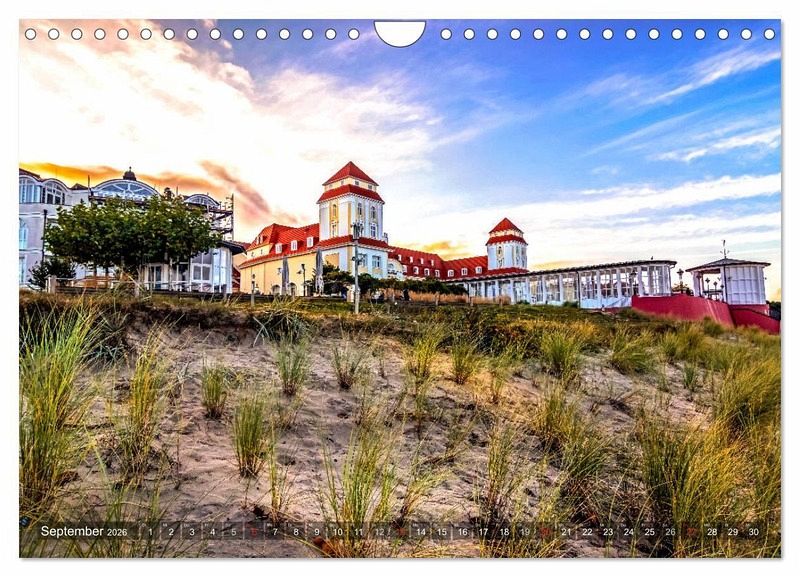 September: Blick über den Strandhafer zum Kurhaus Binz