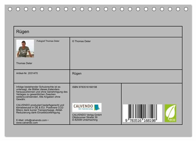 Rügen ist die größte deutsche Insel. Sie ist beliebtes Reiseziel mit all den Sehenswürdigkeiten, der einzigartigen Natur und der lebendigen Tierwelt. Ein paar Impressionen zeigt dieser Kalender vom Fotografen Thomas Deter.