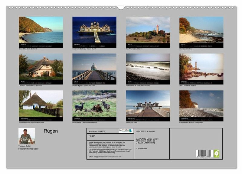 Rügen ist die größte deutsche Insel. Sie ist beliebtes Reiseziel mit all den Sehenswürdigkeiten, der einzigartigen Natur und der lebendigen Tierwelt. Ein paar Impressionen zeigt dieser Kalender vom Fotografen Thomas Deter.