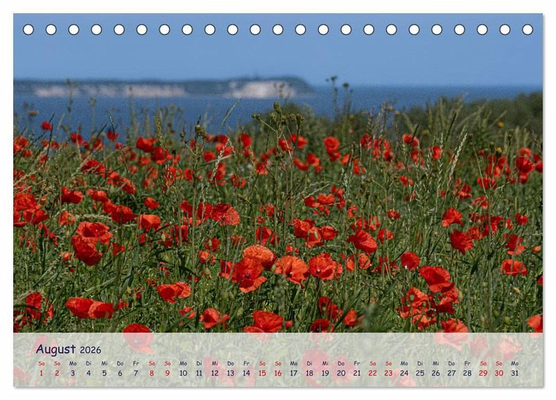 August: Mohnfeld mit Blick auf das Kap Arkona
