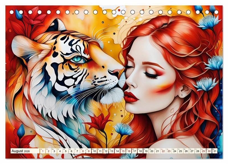 Dieser einzigartige Kalender, präsentiert die Schönheit der Tierwelt in Verbindung mit einer anmutigen Frau. Erleben Sie Monat für Monat die fesselnde Kombination aus der mysteriösen Anziehungskraft der Tiere und der bezaubernden Ausstrahlung der Frau. Tauchen Sie ein und lassen Sie sich entführen in eine Welt, die Ihre Fantasie beflügelt.