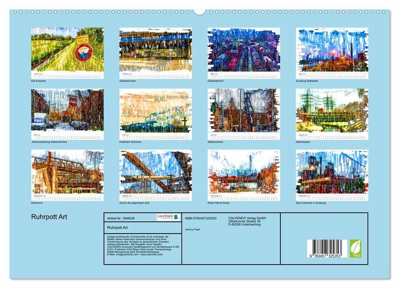 Entdecken Sie den Ruhrpott aus einer völlig neuen Perspektive. Dieser Kalender verbindet den rauen Charme der Industriekulisse mit kunstvollen Bearbeitungen, die alltägliche Orte in faszinierende Kunstwerke verwandeln. Perfekt für alle, die sowohl die Geschichte als auch die kreative Transformation des Ruhrgebiets lieben. Lassen Sie sich Monat für Monat von einzigartigen Bildern inspirieren, die den Ruhrpott in einem unerwartet modernen und künstlerischen Licht zeigen.