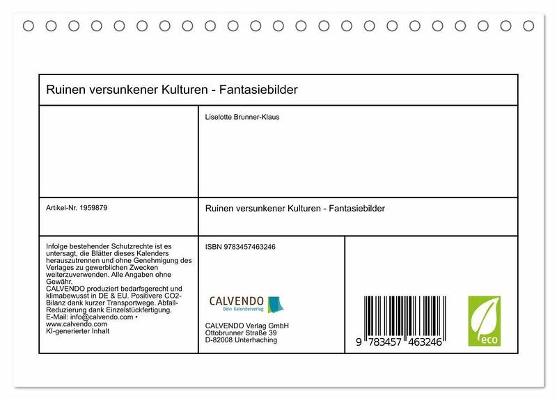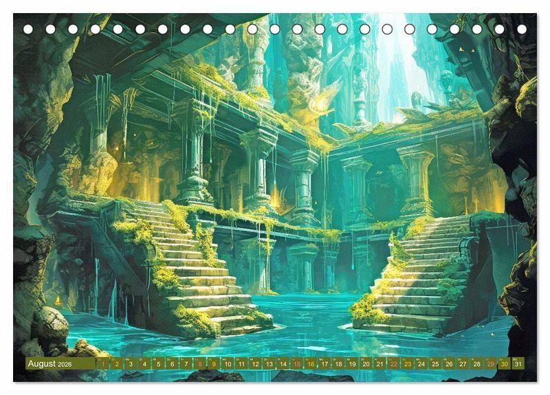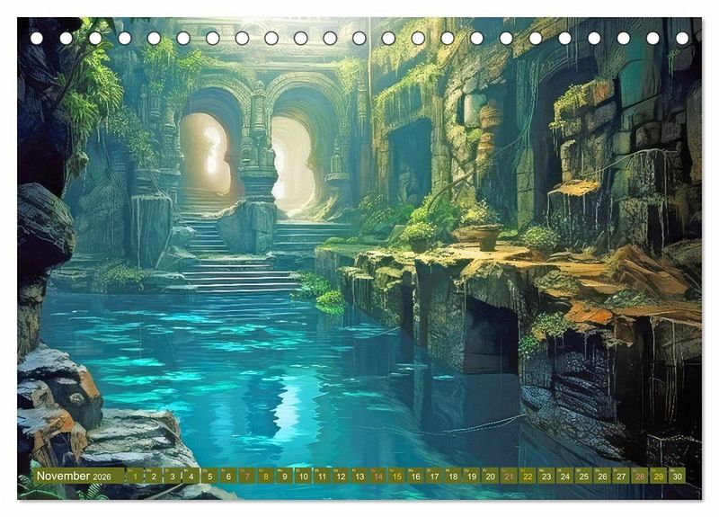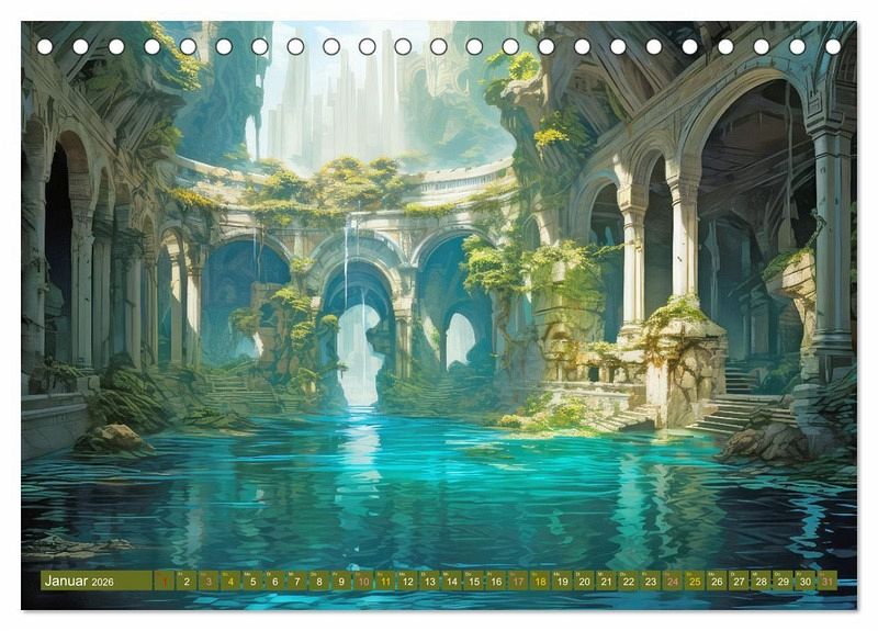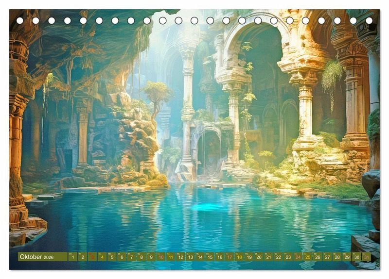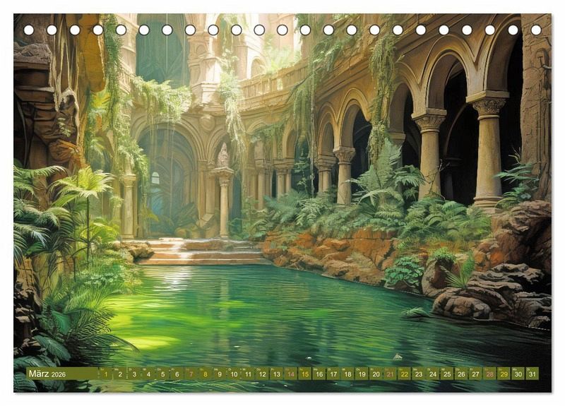 Entdecken Sie geheimnisvolle und mystische Stätten, die von der Natur zurückerobert wurden. Tauchen Sie ein in eine Welt voller Magie und Mystik, in der vergessene Bauten zu Ruinen wurden und versunkene Kulturen eine längst vergangene Zeit erahnen lassen. Es sind atemberaubende KI-Fantasiebilder, die Sie verzaubern und eine zeitlose Ruhe vermitteln. Orte, die voller Geschichte und Geheimnisse stecken. Dieser Kalender ist ein Muss für alle Abenteurer und Träumer, die sich nach unentdeckten Welten sehnen.