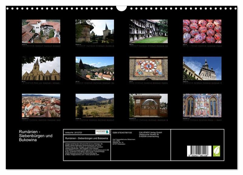 QUALITÄT - Hochwertiger Fotokalender mit 12 wunderschönen Motiven auf lichtbeständigem Bilderdruckpapier, robuste Spiralbindung mit Aufhängebügel.NACHHALTIG - deutliche Abfallreduzierung durch bedarfsgerechte Einzelstückfertigung, umweltfreundliches FSC-zertifiziertes Papier, Produktion in Deutschland, klimabewusste Logistik.PERFEKTES GESCHENK - Kalender für Freunde und Familie, für Kinder und Erwachsene, jung und alt, zu Weihnachten, Geburtstag oder zwischendurch.VIELFALT - Bildkalender in verschiedenen Formaten, z.B. DIN A5, DIN A4, DIN A3 sowie DIN A2. Ob Naturmotiv, Gemälde oder Fotos, ideal für ein persönliches Wohlfühlambiente.Die Schönheiten Siebenbürgens und der Bukowina in einem Kalender vereint. von Autor(in): Ute Löffler