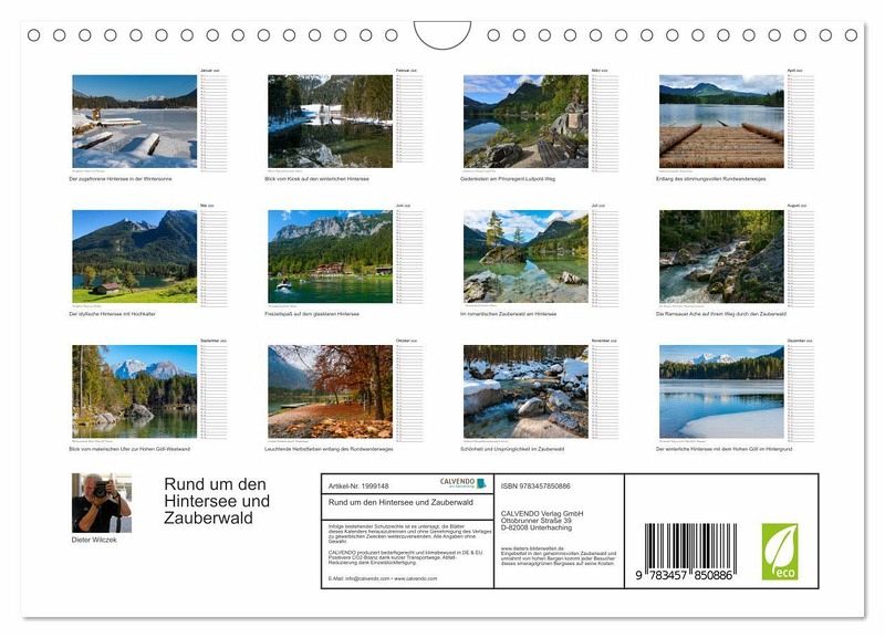 QUALITÄT - Hochwertiger Fotokalender mit 12 wunderschönen Motiven auf lichtbeständigem Bilderdruckpapier, robuste Spiralbindung mit Aufhängebügel.NACHHALTIG - deutliche Abfallreduzierung durch bedarfsgerechte Einzelstückfertigung, umweltfreundliches FSC-zertifiziertes Papier, Produktion in Deutschland, klimabewusste Logistik.PERFEKTES GESCHENK - Kalender für Freunde und Familie, für Kinder und Erwachsene, jung und alt, zu Weihnachten, Geburtstag oder zwischendurch.VIELFALT - Bildkalender in verschiedenen Formaten, z.B. DIN A5, DIN A4, DIN A3 sowie DIN A2. Ob Naturmotiv, Gemälde oder Fotos, ideal für ein persönliches Wohlfühlambiente.Eingebettet in den geheimnisvollen Zauberwald und umrahmt von hohen Bergen kommt jeder Besucher dieses smaragdgrünen Bergsees auf seine Kosten. von Autor(in): Dieter Wilczek