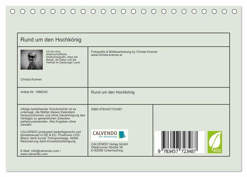 QUALITÄT - Hochwertiger Fotokalender mit 12 wunderschönen Motiven auf lichtbeständigem Bilderdruckpapier, robuste Spiralbindung.NACHHALTIG - deutliche Abfallreduzierung durch bedarfsgerechte Einzelstückfertigung, umweltfreundliches FSC-zertifiziertes Papier, Produktion in Deutschland, klimabewusste Logistik.PERFEKTES GESCHENK - Kalender für Freunde und Familie, für Kinder und Erwachsene, jung und alt, zu Weihnachten, Geburtstag oder zwischendurch.VIELFALT - Bildkalender in verschiedenen Formaten, z.B. DIN A5, DIN A4, DIN A3 sowie DIN A2. Ob Naturmotiv, Gemälde oder Fotos, ideal für ein persönliches Wohlfühlambiente.Impressionen vom Hochkönig in den vier Jahreszeiten von Autor(in): Christa Kramer