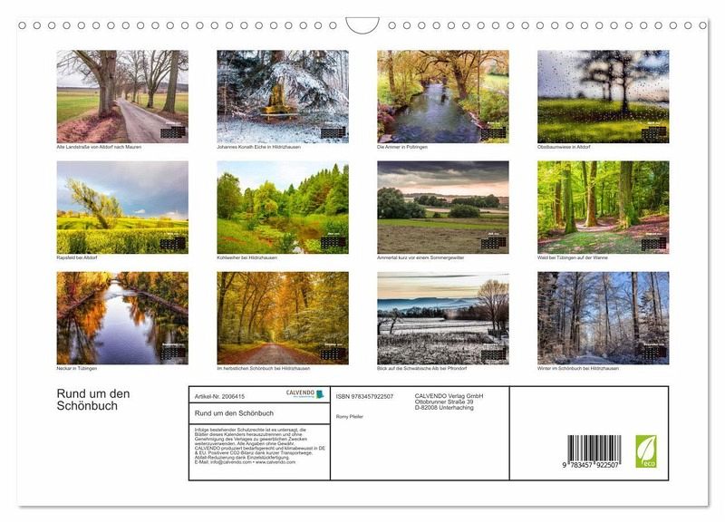 QUALITÄT - Hochwertiger Fotokalender mit 12 wunderschönen Motiven auf lichtbeständigem Bilderdruckpapier, robuste Spiralbindung mit Aufhängebügel.NACHHALTIG - deutliche Abfallreduzierung durch bedarfsgerechte Einzelstückfertigung, umweltfreundliches FSC-zertifiziertes Papier, Produktion in Deutschland, klimabewusste Logistik.PERFEKTES GESCHENK - Kalender für Freunde und Familie, für Kinder und Erwachsene, jung und alt, zu Weihnachten, Geburtstag oder zwischendurch.VIELFALT - Bildkalender in verschiedenen Formaten, z.B. DIN A5, DIN A4, DIN A3 sowie DIN A2. Ob Naturmotiv, Gemälde oder Fotos, ideal für ein persönliches Wohlfühlambiente.Bezaubernde Landschaften in und um das Naturschutzgebiet Schönbuch begleiten Sie durch das ganze Jahr. von Autor(in): Romy Pfeifer