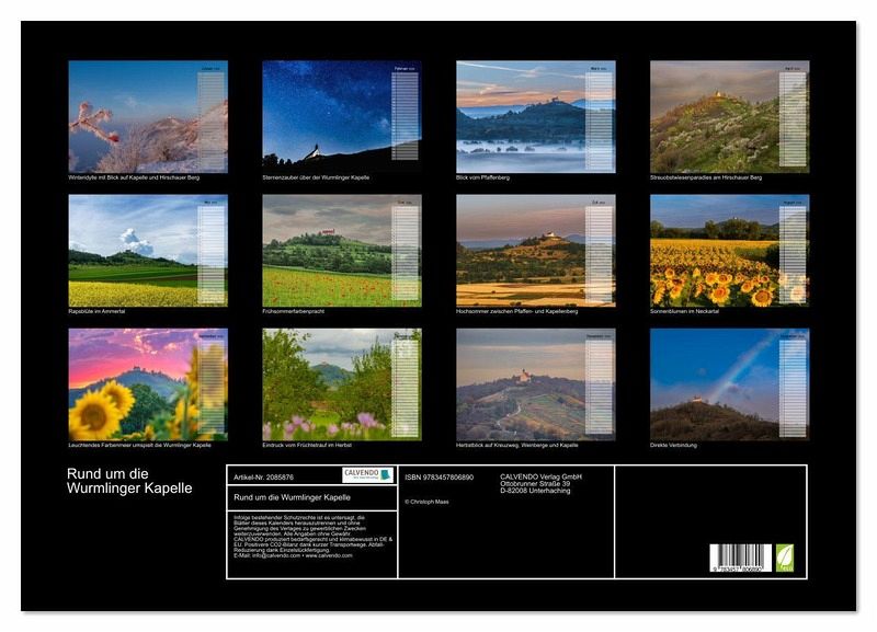 Entdecken Sie den Zauber der Landschaft rund um die Wurmlinger Kapelle - ein Bildkalender mit eindrucksvollen und farbenprächtigen Landschaftsaufnahmen mit atemberaubenden Ausblicken auf die Kapelle, von Streuobstwiesen, Neckar- und Ammertal und historischen Weinbergen. Monat für Monat ein Stück Heimatidylle fürs Zuhause, in der Auflage 2026 mit vollständig neuem Bildmaterial!