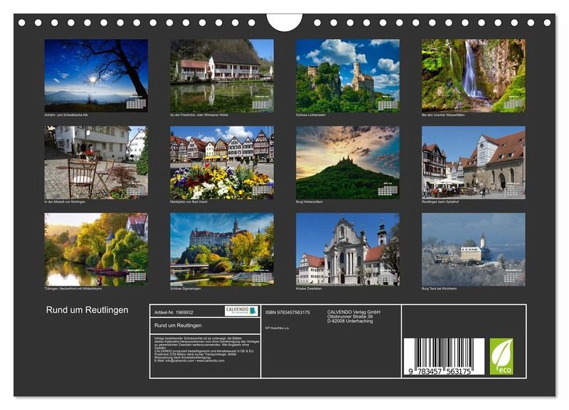 QUALITÄT - Hochwertiger Fotokalender mit 12 wunderschönen Motiven auf lichtbeständigem Bilderdruckpapier, robuste Spiralbindung mit Aufhängebügel.NACHHALTIG - deutliche Abfallreduzierung durch bedarfsgerechte Einzelstückfertigung, umweltfreundliches FSC-zertifiziertes Papier, Produktion in Deutschland, klimabewusste Logistik.PERFEKTES GESCHENK - Kalender für Freunde und Familie, für Kinder und Erwachsene, jung und alt, zu Weihnachten, Geburtstag oder zwischendurch.VIELFALT - Bildkalender in verschiedenen Formaten, z.B. DIN A5, DIN A4, DIN A3 sowie DIN A2. Ob Naturmotiv, Gemälde oder Fotos, ideal für ein persönliches Wohlfühlambiente.Attraktive Ausflugsziele rund um Reutlingen von Autor(in): Peter Huschka