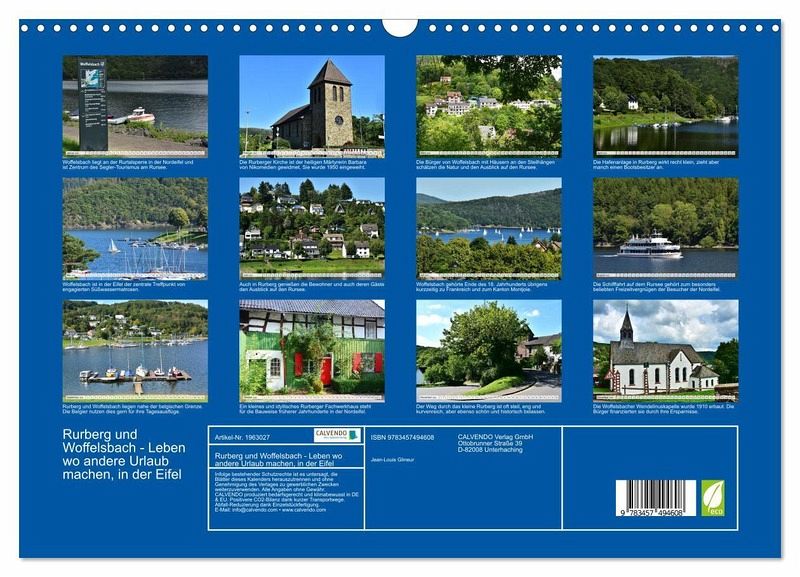 QUALITÄT - Hochwertiger Fotokalender mit 12 wunderschönen Motiven auf lichtbeständigem Bilderdruckpapier, robuste Spiralbindung mit Aufhängebügel.NACHHALTIG - deutliche Abfallreduzierung durch bedarfsgerechte Einzelstückfertigung, umweltfreundliches FSC-zertifiziertes Papier, Produktion in Deutschland, klimabewusste Logistik.PERFEKTES GESCHENK - Kalender für Freunde und Familie, für Kinder und Erwachsene, jung und alt, zu Weihnachten, Geburtstag oder zwischendurch.VIELFALT - Bildkalender in verschiedenen Formaten, z.B. DIN A5, DIN A4, DIN A3 sowie DIN A2. Ob Naturmotiv, Gemälde oder Fotos, ideal für ein persönliches Wohlfühlambiente.Lebensqualität pur in der Nordeifel von Autor(in): DeVerviers