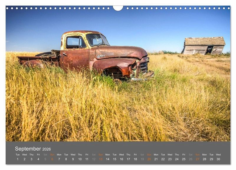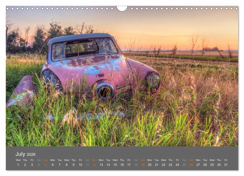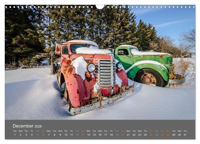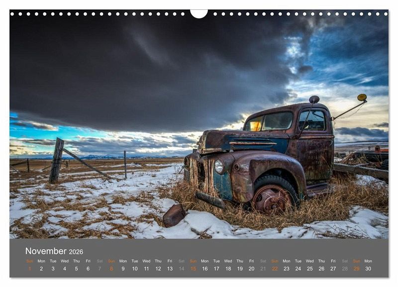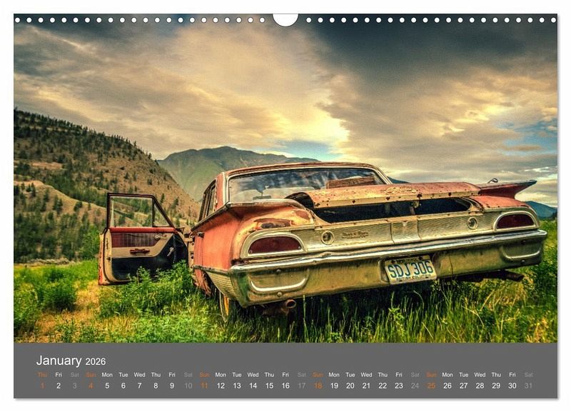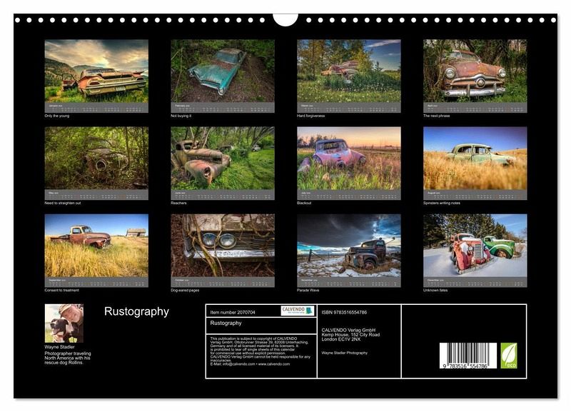 QUALITY - High-quality photo calendar with 12 beautiful images on light-resistant paper, robust spiral binding with hanger.SUSTAINABLE - Significant waste reduction due to print-on-demand production, environmentally friendly FSC-certified paper, produced in the UK, climate-conscious logistical processes.PERFECT GIFT - calendars for friends and family, for children, all ages and all occasions, from Christmas to birthdays and everything in between.LOTS OF CHOICE - Wall calendars in different sizes (DIN A4 and DIN A3), for any topic and personal taste, featuring photography, painting and illustrations.Abandoned rusty cars and trucks in a rural setting., author: Wayne Stadler