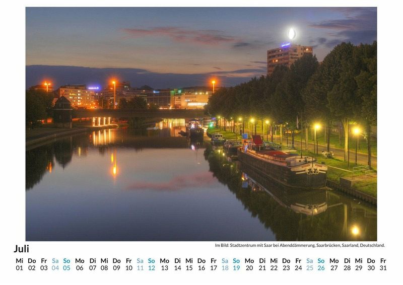 Entdecken Sie die Schönheit Saarbrückens mit unserem exklusiven Wandkalender! Dieser hochwertige Kalender präsentiert 12 liebevoll ausgewählte Motive der charmanten Landeshauptstadt des Saarlandes - von historischen Bauwerken bis hin zu malerischen Landschaften. Gedruckt auf lichtbeständigem Bilderdruckpapier, kommen die Farben besonders brillant zur Geltung und sorgen für ein ganzjähriges visuelles Highlight in Ihrem Zuhause oder Büro. Nachhaltigkeit liegt uns am Herzen: Der Kalender wird in Deutschland auf FSC-zertifiziertem Papier produziert. Gönnen Sie sich oder Ihren Liebsten ein Stück Saarbrücken - Monat für Monat ein neues Erlebnis! Hochwertig Erleben Sie ein Jahr voller Eleganz mit unserem Premium-Fotokalender. Jedes der 12 Motive ist auf hochwertigem, lichtbeständigem Bilderdruckpapier gedruckt, um die Lebendigkeit jedes Bildes zu bewahren. Die robuste Spiralbindung gewährleistet Langlebigkeit und einfache Handhabung. Nachhaltig Unser Engagement für die Umwelt spiegelt sich in jedem Exemplar wider. Durch die Produktion auf Abruf reduzieren wir signifikant unseren Abfall. Wir verwenden ausschließlich umweltfreundliches, FSC-zertifiziertes Papier. Stolz gefertigt in Deutschland, achten wir bei unserer Logistik auf Klimaschutz, um unseren ökologischen Fußabdruck zu minimieren. Das ideale Geschenk Dieser Kalender ist das perfekte Präsent für jeden Anlass - ob Weihnachten, Geburtstage oder einfach als liebevolle Aufmerksamkeit zwischendurch. Geeignet für Freunde, Familie, Kinder und Erwachsene gleichermaßen, bereichert er jedes Zuhause mit seiner Vielfalt und Schönheit, unabhängig vom Alter der Beschenkten.