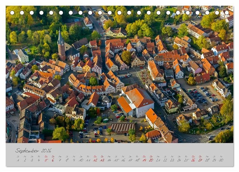 September: Luftbild der Altstadt von Ottweiler mit historischen Häusern, Alter Turm