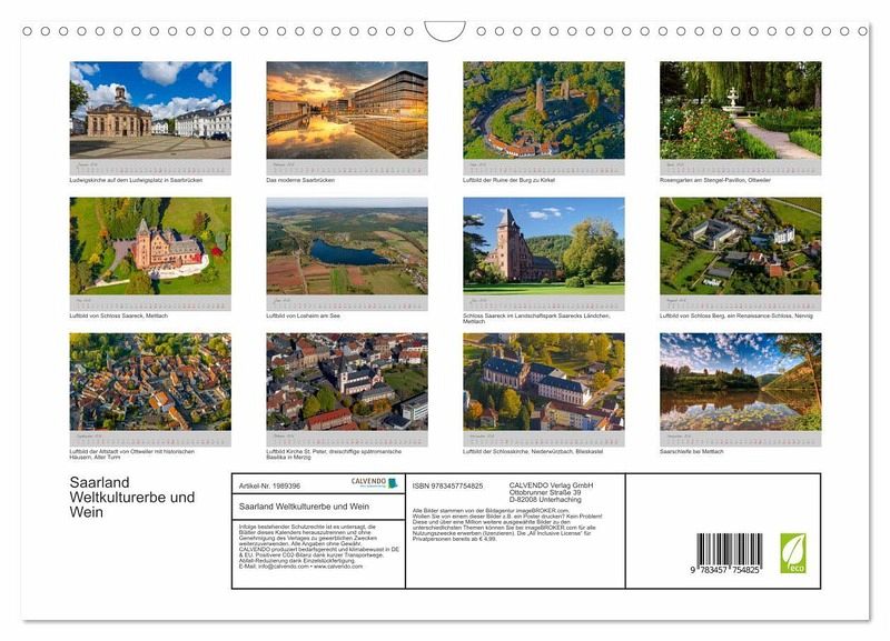 Das Saarland, das kleinste Bundesland Deutschlands, bietet eine interessante Vergangenheit und eine lebendige Gegenwart mit viel Kultur. Der Kalender lädt zu einem Streifzug ein.