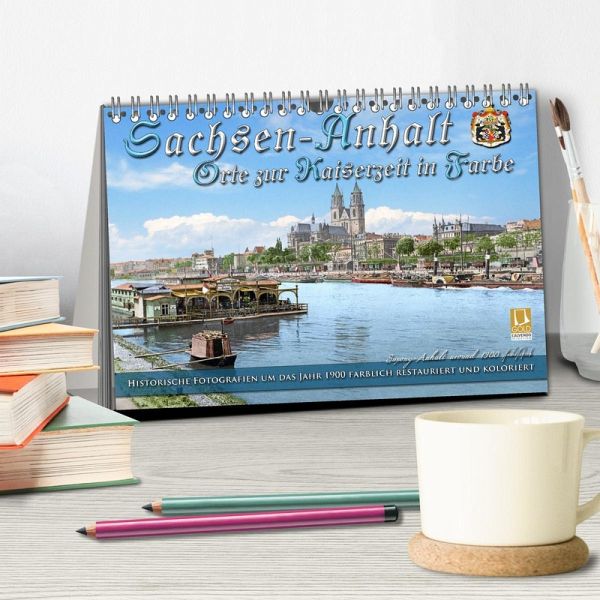 Das Gebiet des heutigen Sachsen-Anhalt hat eine interessante Geschichte und Landschaft und war auch in den Jahren 1895 bis 1910 bunt und voller Leben. In diesem besonderen Kalender sehen Sie alte Photochromdrucke und Schwarzweißfotos, die möglichst detailreich farblich restauriert und koloriert wurden, um den Orten, den Menschen und dem damaligen Alltag zur Kaiserzeit nicht nur Farbe, sondern auch neues Leben einzuhauchen. Kommen Sie mit auf eine Bilderreise durch das alte Sachsen-Anhalt in der Zeit um 1900, sehen Sie bekannte Orte, Landschaften, Plätze und Straßen und haben Sie teil am Leben und Umfeld der Menschen dieser Zeit, auch wenn es in diesem Kalender nur eine kleine Auswahl an Örtlichkeiten ist.
