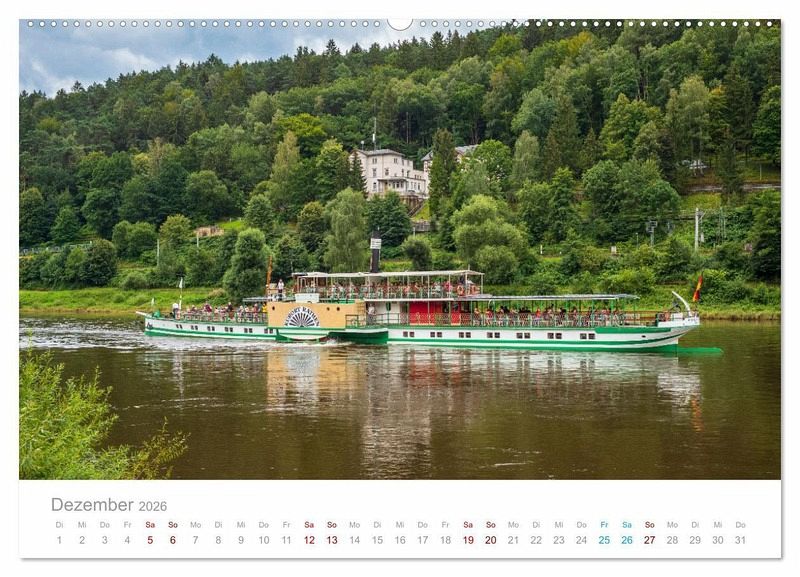Dezember: Historischer Elbdampfer auf der Elbe nahe Bad Schandau
