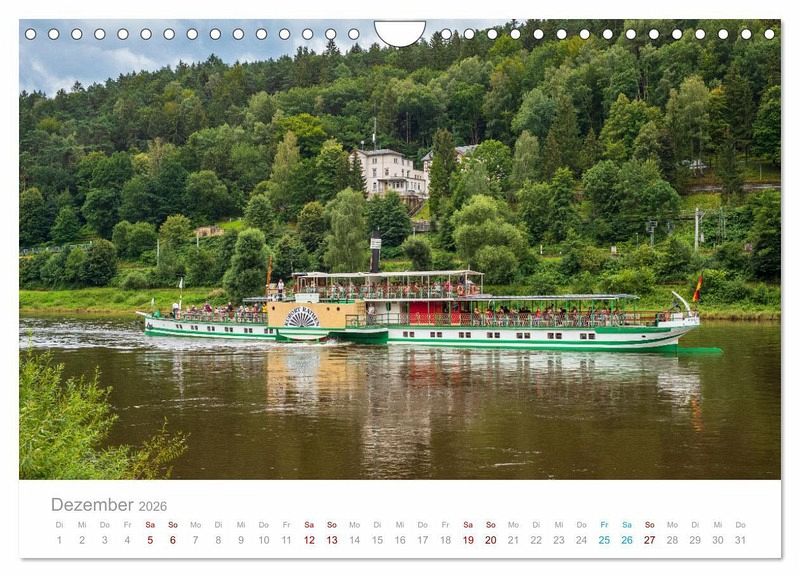 Dezember: Historischer Elbdampfer auf der Elbe nahe Bad Schandau