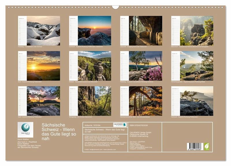 QUALITÄT - Hochwertiger Fotokalender mit 12 wunderschönen Motiven auf lichtbeständigem Bilderdruckpapier, robuste Spiralbindung mit Aufhängebügel.NACHHALTIG - deutliche Abfallreduzierung durch bedarfsgerechte Einzelstückfertigung, umweltfreundliches FSC-zertifiziertes Papier, Produktion in Deutschland, klimabewusste Logistik.PERFEKTES GESCHENK - Kalender für Freunde und Familie, für Kinder und Erwachsene, jung und alt, zu Weihnachten, Geburtstag oder zwischendurch.VIELFALT - Bildkalender in verschiedenen Formaten, z.B. DIN A5, DIN A4, DIN A3 sowie DIN A2. Ob Naturmotiv, Gemälde oder Fotos, ideal für ein persönliches Wohlfühlambiente.Das Elbsandsteingebirge in neuen Perspektiven. Vertraute Landschaften neu sehen und entdecken. von Autor(in): Pixelwerk