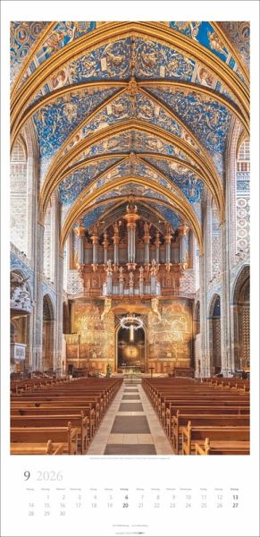 - Meisterwerke der sakralen Architektur Europas- Prächtige und eindrucksvolle Bauwerke, Orte der Einkehr und der Stille- Monat für Monat Kirschenschiffe in voller Länge genießen: XXL-Kalender vertikal im Format 33x68 cm- Hochwertige Wandkalender für jeden Geschmack: Die Marke Weingarten im Athesia Kalenderverlag