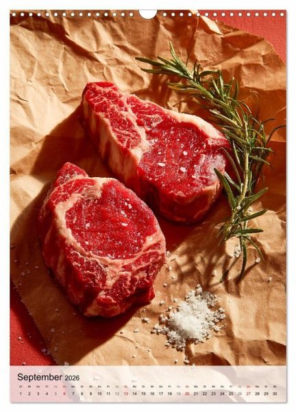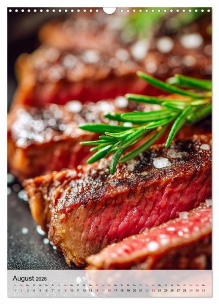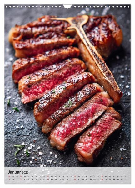 Fleisch in seiner besten Form: Dieser Kalender zeigt 12 Bilder voller Steak-Genuss, die jeden Monat Appetit machen. Ob T-Bone, Ribeye, Entrecote, Filet oder Roastbeef - die Vielfalt an Rindfleisch-Cuts sorgt für Abwechslung und macht Lust auf mehr. Saftig gegrillt, roh vorbereitet oder kunstvoll angerichtet, jedes Motiv bringt die Leidenschaft für Fleisch perfekt zur Geltung. Ideal für Grillfans, BBQ-Enthusiasten und alle, die gutes Rindfleisch schätzen. Der Kalender eignet sich hervorragend als Geschenk oder Mitbringsel für Fleischliebhaber und ist mit seinen hochwertigen Aufnahmen ein echter Blickfang in Küche, Büro oder Grillhütte. Bilder mit KI generiert.
