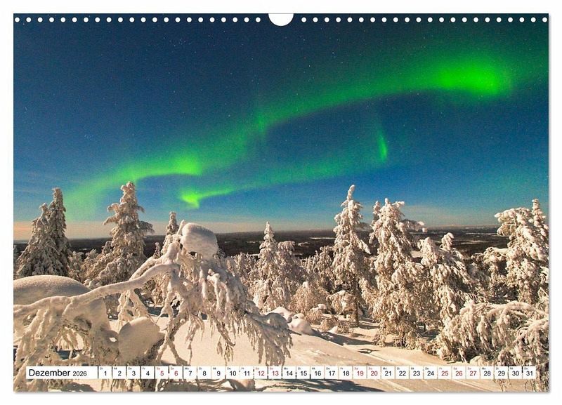 Dezember: Nordlicht in einer Vollmondnacht, Finnisch Lappland