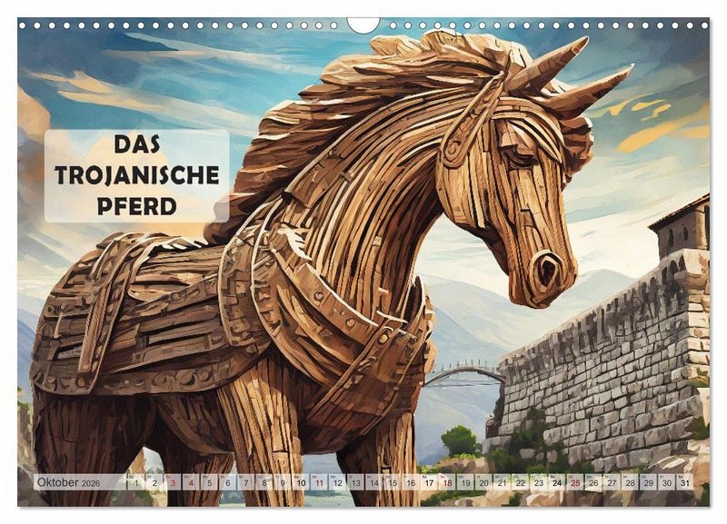Oktober: Das Trojanische Pferd vor den Mauern Trojas