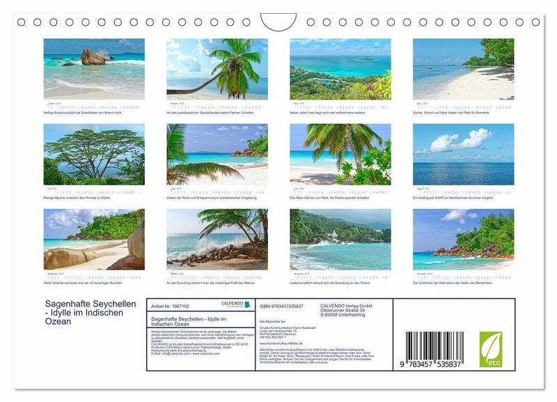 QUALITÄT - Hochwertiger Fotokalender mit 12 wunderschönen Motiven auf lichtbeständigem Bilderdruckpapier, robuste Spiralbindung mit Aufhängebügel.NACHHALTIG - deutliche Abfallreduzierung durch bedarfsgerechte Einzelstückfertigung, umweltfreundliches FSC-zertifiziertes Papier, Produktion in Deutschland, klimabewusste Logistik.PERFEKTES GESCHENK - Kalender für Freunde und Familie, für Kinder und Erwachsene, jung und alt, zu Weihnachten, Geburtstag oder zwischendurch.VIELFALT - Bildkalender in verschiedenen Formaten, z.B. DIN A5, DIN A4, DIN A3 sowie DIN A2. Ob Naturmotiv, Gemälde oder Fotos, ideal für ein persönliches Wohlfühlambiente.Sonne, Strand und Meer für alle, die das Paradies suchen von Autor(in): Hans Rodewald CreativK.de