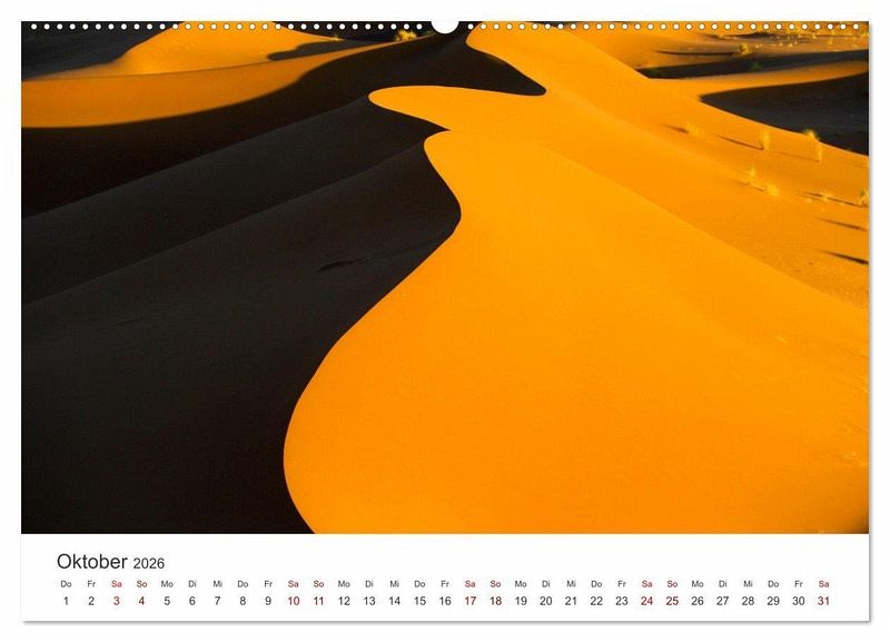 Die Sahara ist eine riesige Wüste in Afrika, die wunderschöne Landschaften zu bieten hat. Nur wenige Lebewesen können in den harten Bedingungen der Wüste überleben. Dieser Kalender zeigt 12 atemberaubende Aufnahmen der Sahara Wüste.