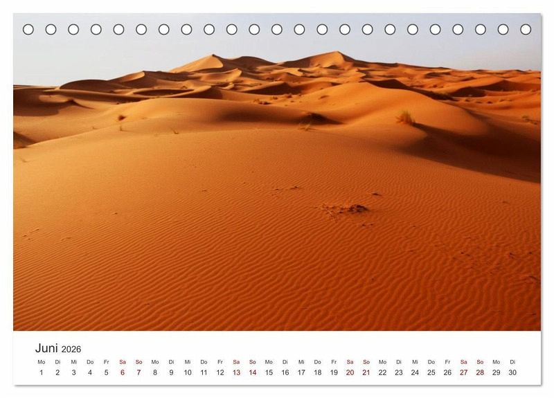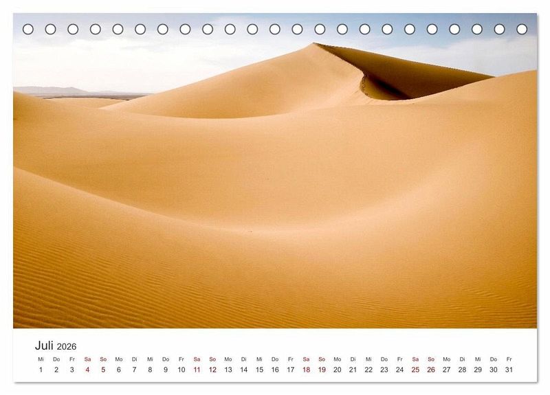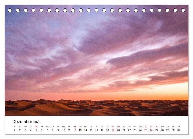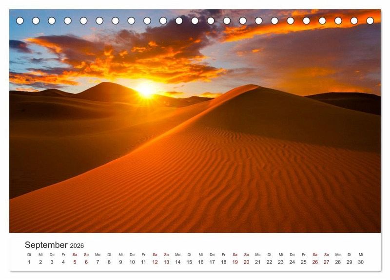 Die Sahara ist eine riesige Wüste in Afrika, die wunderschöne Landschaften zu bieten hat. Nur wenige Lebewesen können in den harten Bedingungen der Wüste überleben. Dieser Kalender zeigt 12 atemberaubende Aufnahmen der Sahara Wüste.