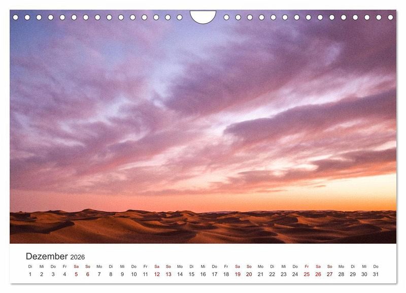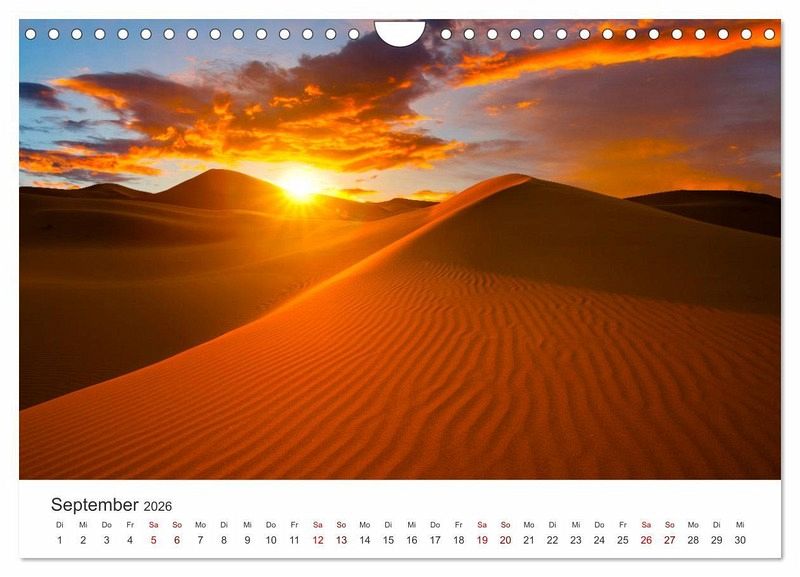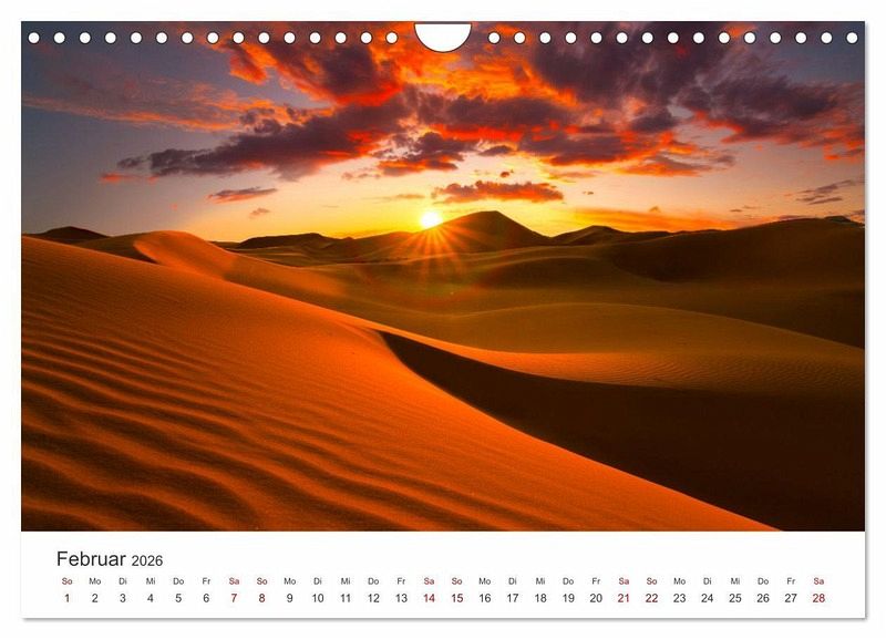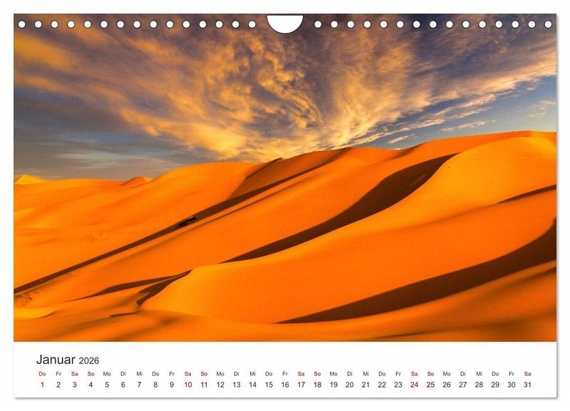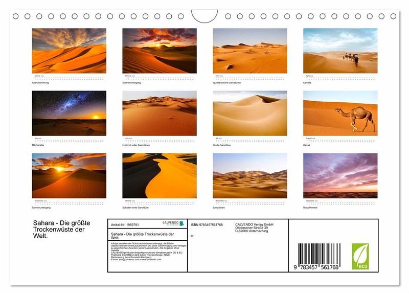 Die Sahara ist eine riesige Wüste in Afrika, die wunderschöne Landschaften zu bieten hat. Nur wenige Lebewesen können in den harten Bedingungen der Wüste überleben. Dieser Kalender zeigt 12 atemberaubende Aufnahmen der Sahara Wüste.