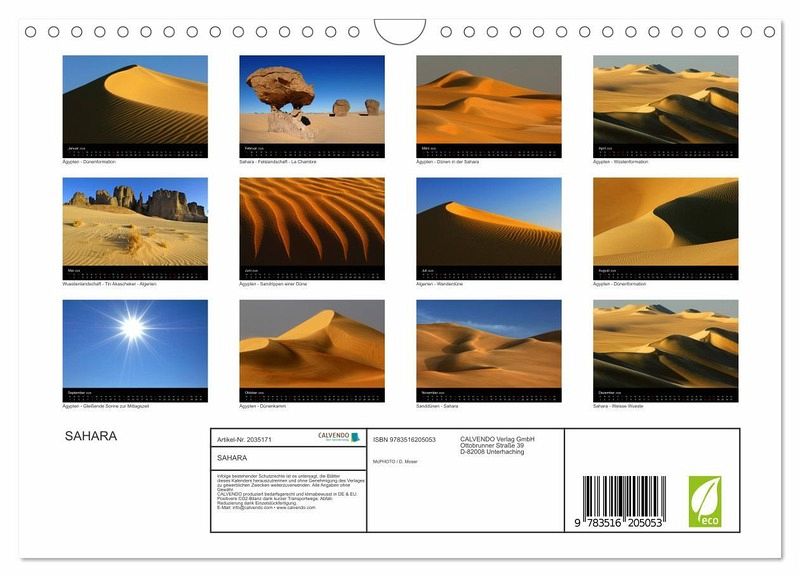 QUALITÄT - Hochwertiger Fotokalender mit 12 wunderschönen Motiven auf lichtbeständigem Bilderdruckpapier, robuste Spiralbindung mit Aufhängebügel.NACHHALTIG - deutliche Abfallreduzierung durch bedarfsgerechte Einzelstückfertigung, umweltfreundliches FSC-zertifiziertes Papier, Produktion in Deutschland, klimabewusste Logistik.PERFEKTES GESCHENK - Kalender für Freunde und Familie, für Kinder und Erwachsene, jung und alt, zu Weihnachten, Geburtstag oder zwischendurch.VIELFALT - Bildkalender in verschiedenen Formaten, z.B. DIN A5, DIN A4, DIN A3 sowie DIN A2. Ob Naturmotiv, Gemälde oder Fotos, ideal für ein persönliches Wohlfühlambiente.Die Schönheit der Wüste Sahara von Autor(in): Klaus Steinkamp