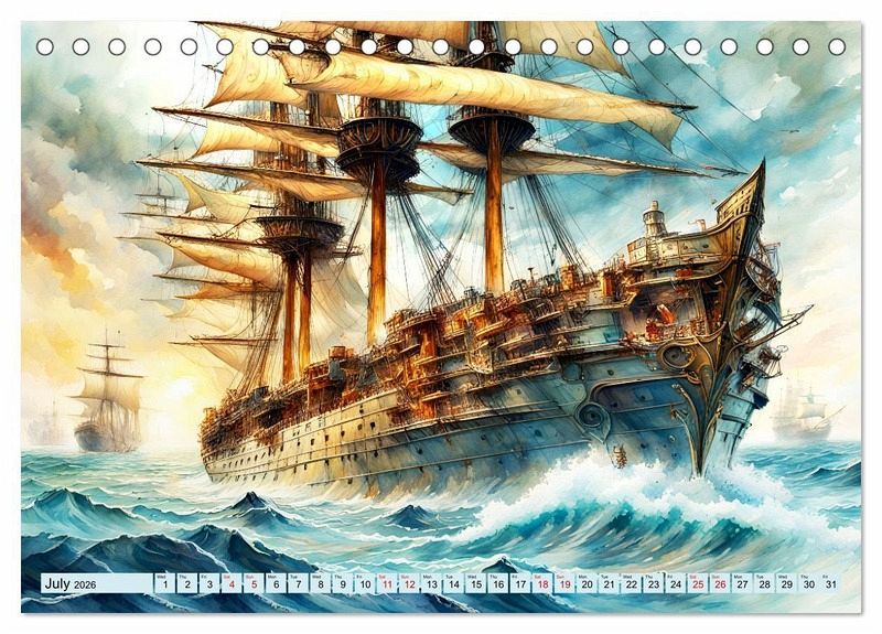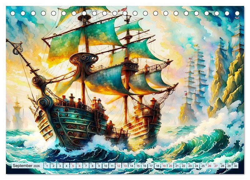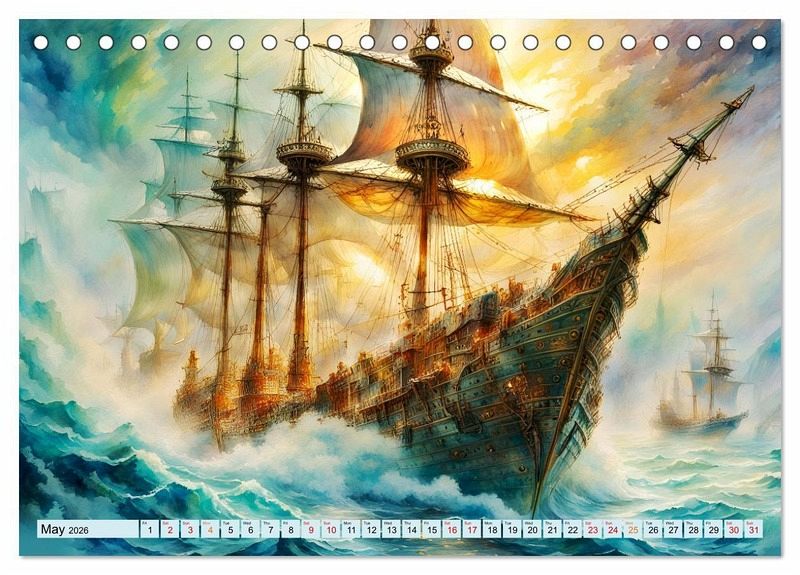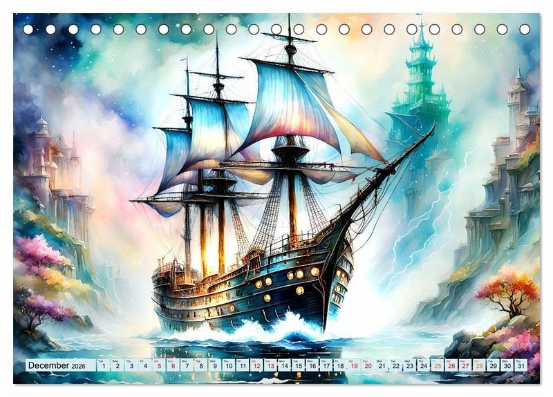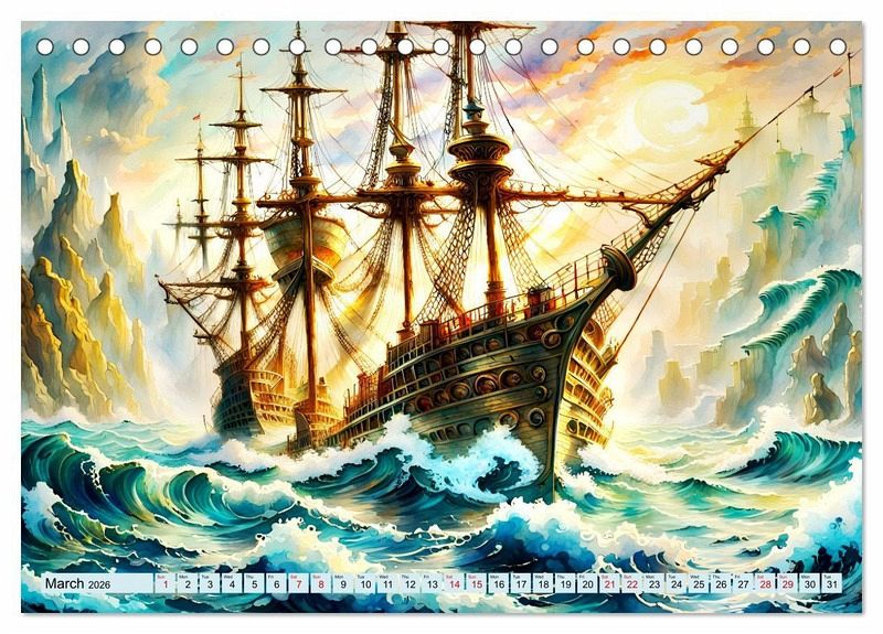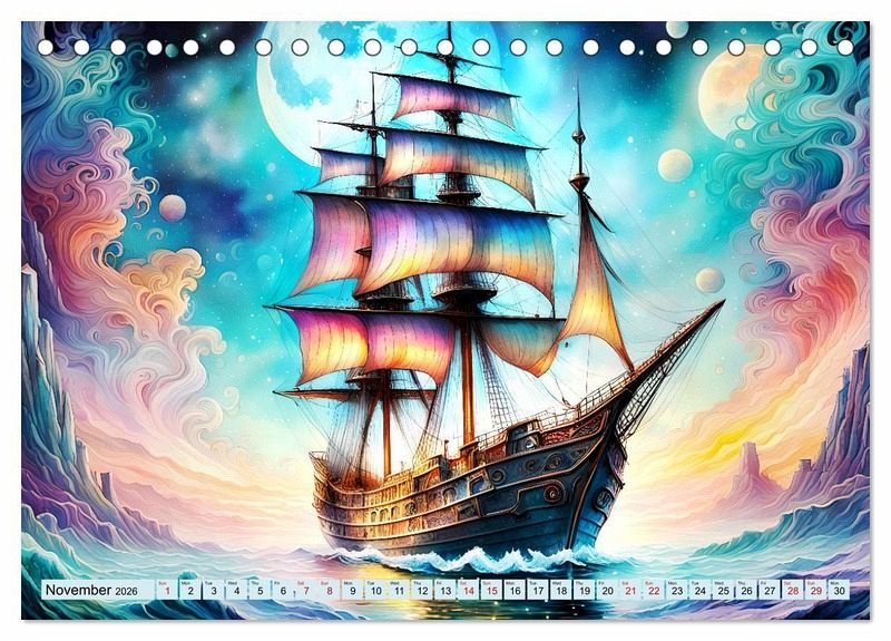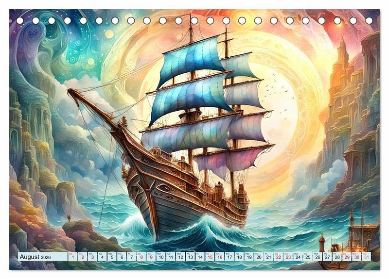 Immerse yourself in a fantastic world full of adventure and magic with our fantasy sailing ship calendar. Experience the breathtaking beauty and magic of this unique creation, created with the help of the author's artificial intelligence and imagination.