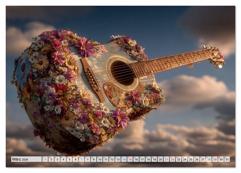 Für Musikliebhaber, Bildgenießer und alle, die Gitarren nicht nur hören, sondern auch sehen möchte. Jedes Bild wurde mithilfe künstlicher Intelligenz erschaffen und spielt mit Stilrichtungen, Farben und Texturen. Die Bilder zeigen Gitarren nicht nur als Instrumente, sondern als Ausdruck von Stimmung, Bewegung und Persönlichkeit. "Saitenzauber - Gitarren im Bilderklang" vereint zwölf kunstvoll inszenierte Motive verschiedenster Gitarren - von der klassischen Konzertgitarre bis zur futuristischen Gitarre. Ob akustisch oder elektrisch, modern oder nostalgisch - dieser Kalender bringt visuelle Musik an die Wand. Ideal für Musikerinnen, Kreative oder einfach alle, die eine stilvolle Begleitung durchs Jahr suchen.