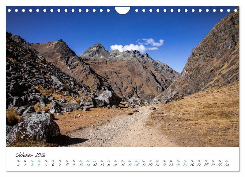 QUALITÄT - Hochwertiger Fotokalender mit 12 wunderschönen Motiven auf lichtbeständigem Bilderdruckpapier, robuste Spiralbindung mit Aufhängebügel.NACHHALTIG - deutliche Abfallreduzierung durch bedarfsgerechte Einzelstückfertigung, umweltfreundliches FSC-zertifiziertes Papier, Produktion in Deutschland, klimabewusste Logistik.PERFEKTES GESCHENK - Kalender für Freunde und Familie, für Kinder und Erwachsene, jung und alt, zu Weihnachten, Geburtstag oder zwischendurch.VIELFALT - Bildkalender in verschiedenen Formaten, z.B. DIN A5, DIN A4, DIN A3 sowie DIN A2. Ob Naturmotiv, Gemälde oder Fotos, ideal für ein persönliches Wohlfühlambiente.Eine Wanderung von den schneebedeckten Gipfeln des Salkantay-Massivs über die grünen Täler bis hin zu den historischen Ruinen des Machu Picchu. von Autor(in): Inxtagenumdiewelt.de