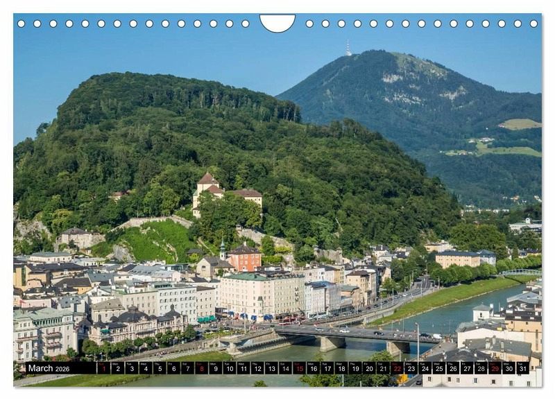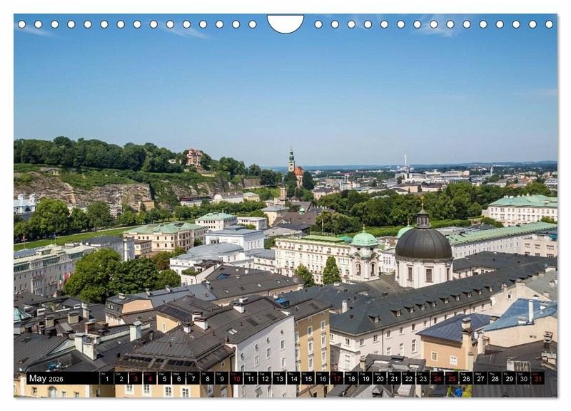 Salzburg's Old Town is internationally renowned for its unique baroque architecture and is one of the best-preserved city centers north of the Alps. The beautiful Salzburg Fortress is the most famous landmark. Also, many other popular sights can be seen from the hills surrounding the old town like Kapuzinerberg or Moenchsberg. Get this calendar with 13 gorgeous views of Austria's lovely city.