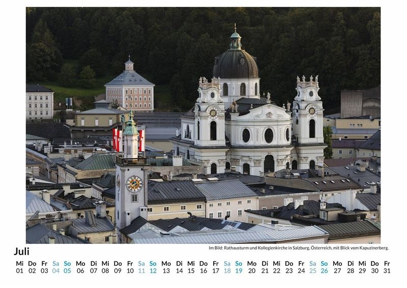Entdecken Sie die atemberaubende Schönheit Salzburgs mit unserem exklusiven Wandkalender! Lassen Sie sich Monat für Monat von 12 liebevoll ausgewählten Motiven verzaubern, die die malerische Stadt und ihre Umgebung in all ihren Facetten zeigen - von der historischen Altstadt bis zu den majestätischen Alpen. Gedruckt auf hochwertigem, lichtbeständigem Bilderdruckpapier, bleibt die Brillanz der Farben das ganze Jahr über erhalten. Nachhaltigkeit liegt uns am Herzen: Der Kalender wird in Deutschland auf FSC-zertifiziertem Papier produziert. Holen Sie sich ein Stück Salzburg nach Hause und genießen Sie jeden Tag ein neues Highlight! Perfekt auch als Geschenk! Hochwertig Erleben Sie ein Jahr voller Eleganz mit unserem Premium-Fotokalender. Jedes der 12 Motive ist auf hochwertigem, lichtbeständigem Bilderdruckpapier gedruckt, um die Lebendigkeit jedes Bildes zu bewahren. Die robuste Spiralbindung gewährleistet Langlebigkeit und einfache Handhabung. Nachhaltig Unser Engagement für die Umwelt spiegelt sich in jedem Exemplar wider. Durch die Produktion auf Abruf reduzieren wir signifikant unseren Abfall. Wir verwenden ausschließlich umweltfreundliches, FSC-zertifiziertes Papier. Stolz gefertigt in Deutschland, achten wir bei unserer Logistik auf Klimaschutz, um unseren ökologischen Fußabdruck zu minimieren. Das ideale Geschenk Dieser Kalender ist das perfekte Präsent für jeden Anlass - ob Weihnachten, Geburtstage oder einfach als liebevolle Aufmerksamkeit zwischendurch. Geeignet für Freunde, Familie, Kinder und Erwachsene gleichermaßen, bereichert er jedes Zuhause mit seiner Vielfalt und Schönheit, unabhängig vom Alter der Beschenkten.