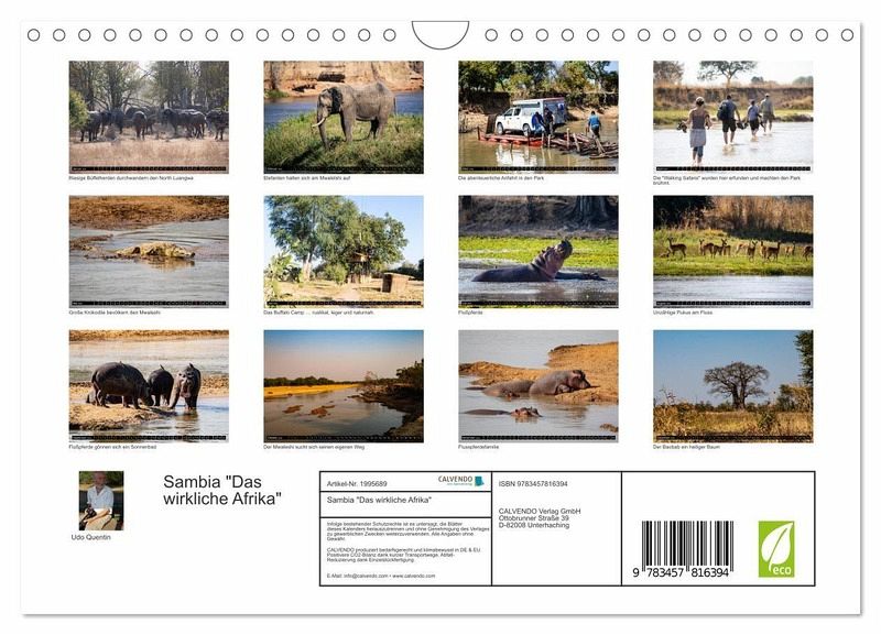 QUALITÄT - Hochwertiger Fotokalender mit 12 wunderschönen Motiven auf lichtbeständigem Bilderdruckpapier, robuste Spiralbindung mit Aufhängebügel.NACHHALTIG - deutliche Abfallreduzierung durch bedarfsgerechte Einzelstückfertigung, umweltfreundliches FSC-zertifiziertes Papier, Produktion in Deutschland, klimabewusste Logistik.PERFEKTES GESCHENK - Kalender für Freunde und Familie, für Kinder und Erwachsene, jung und alt, zu Weihnachten, Geburtstag oder zwischendurch.VIELFALT - Bildkalender in verschiedenen Formaten, z.B. DIN A5, DIN A4, DIN A3 sowie DIN A2. Ob Naturmotiv, Gemälde oder Fotos, ideal für ein persönliches Wohlfühlambiente.North Luangwa ein wildes Naturerlebnis. von Autor(in): Udo Quentin