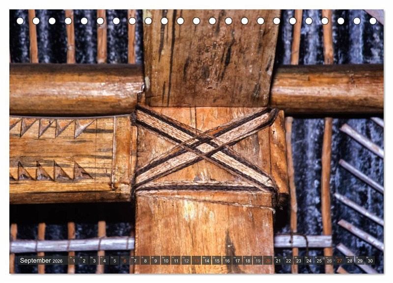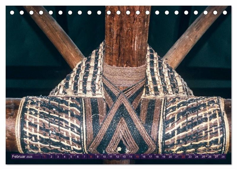 Februar: Kunstvolle Knotenverbindungen aus Kokosschnüren im Mbure (Versammlungshaus) auf Bao Island, Fidschi