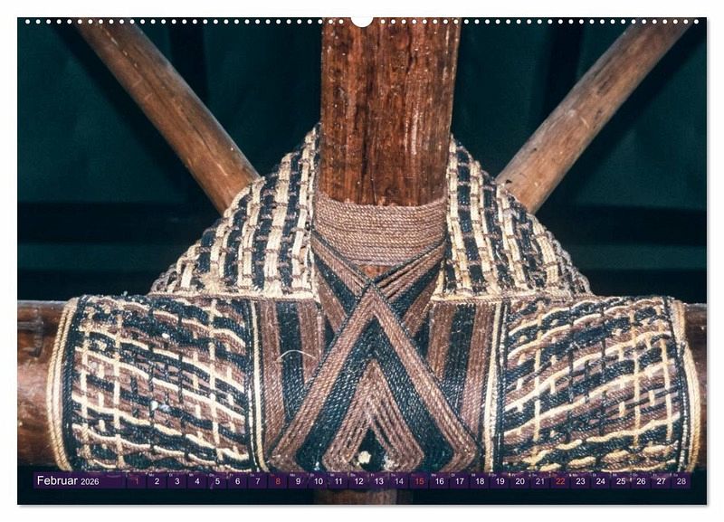 Februar: Kunstvolle Knotenverbindungen aus Kokosschnüren im Mbure (Versammlungshaus) auf Bao Island, Fidschi