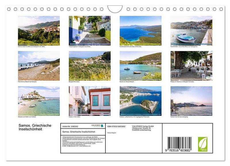 QUALITÄT - Hochwertiger Fotokalender mit 12 wunderschönen Motiven auf lichtbeständigem Bilderdruckpapier, robuste Spiralbindung mit Aufhängebügel.NACHHALTIG - deutliche Abfallreduzierung durch bedarfsgerechte Einzelstückfertigung, umweltfreundliches FSC-zertifiziertes Papier, Produktion inDeutschland, klimabewusste Logistik.PERFEKTES GESCHENK - Kalender für Freunde und Familie, für Kinder und Erwachsene, jung und alt, zu Weihnachten, Geburtstag oder zwischendurch.VIELFALT - Bildkalender in verschiedenen Formaten, z.B. DIN A5, DIN A4, DIN A3 sowie DIN A2. Ob Naturmotiv, Gemälde oder Fotos, ideal für ein persönliches Wohlfühlambiente.Erleben Sie die Ägäisinsel Samos in ihren schönsten Facetten. von Autor(in): Hanna Wagner