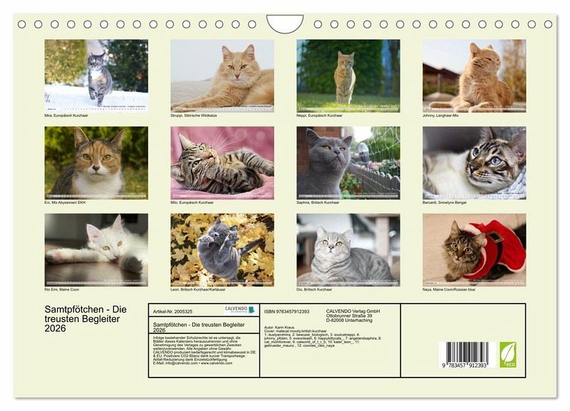 12 wunderschöne Katzenbilder von Karin Kraus mit der Unterstützung von einigen Social Media Accounts, die mit ihren Bilder diesen Kalender glänzen lassen.