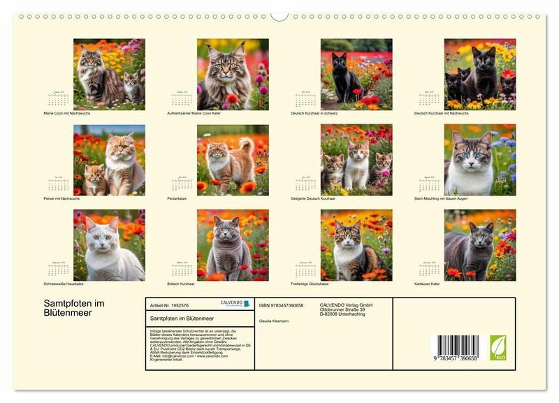 PREMIUM-LINIE - Brillanter Fotokalender mit 12 wunderschönen Motiven, Kunstdruck in Hochglanz in Museumsqualität.QUALITÄT - edle Materialien, stabile Rückwand mit 2 innovativen Einstecktaschen für eine optimale Präsentation an der Wand.NACHHALTIG - deutliche Abfallreduzierung durch bedarfsgerechte Einzelstückfertigung, umweltfreundliches FSC-zertifiziertes Papier, Produktion in Deutschland, klimabewusste Logistik.PERFEKTES GESCHENK - Kalender für Freunde und Familie, für Kinder und Erwachsene, jung und alt, zu Weihnachten, Geburtstag oder zwischendurch.Zauberhafte Katzenportraits von Autor(in): Claudia Kleemann