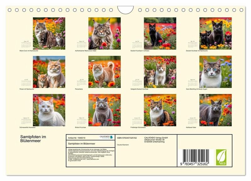 QUALITÄT - Hochwertiger Fotokalender mit 12 wunderschönen Motiven auf lichtbeständigem Bilderdruckpapier, robuste Spiralbindung mit Aufhängebügel.NACHHALTIG - deutliche Abfallreduzierung durch bedarfsgerechte Einzelstückfertigung, umweltfreundliches FSC-zertifiziertes Papier, Produktion in Deutschland, klimabewusste Logistik.PERFEKTES GESCHENK - Kalender für Freunde und Familie, für Kinder und Erwachsene, jung und alt, zu Weihnachten, Geburtstag oder zwischendurch.VIELFALT - Bildkalender in verschiedenen Formaten, z.B. DIN A5, DIN A4, DIN A3 sowie DIN A2. Ob Naturmotiv, Gemälde oder Fotos, ideal für ein persönliches Wohlfühlambiente.Zauberhafte Katzenportraits von Autor(in): Claudia Kleemann