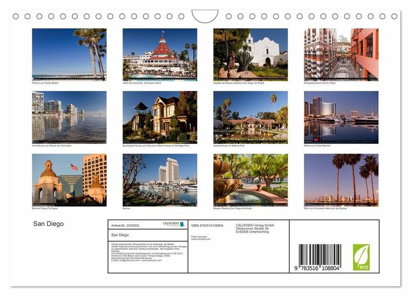 QUALITÄT - Hochwertiger Fotokalender mit 12 wunderschönen Motiven auf lichtbeständigem Bilderdruckpapier, robuste Spiralbindung mit Aufhängebügel.NACHHALTIG - deutliche Abfallreduzierung durch bedarfsgerechte Einzelstückfertigung, umweltfreundliches FSC-zertifiziertes Papier, Produktion in Deutschland, klimabewusste Logistik.PERFEKTES GESCHENK - Kalender für Freunde und Familie, für Kinder und Erwachsene, jung und alt, zu Weihnachten, Geburtstag oder zwischendurch.VIELFALT - Bildkalender in verschiedenen Formaten, z.B. DIN A5, DIN A4, DIN A3 sowie DIN A2. Ob Naturmotiv, Gemälde oder Fotos, ideal für ein persönliches Wohlfühlambiente.Kalifornisches Lebensgefühl aus San Diego in einem Kalender vom Reiseotografen Peter Schickert von Autor(in): Peter Schickert