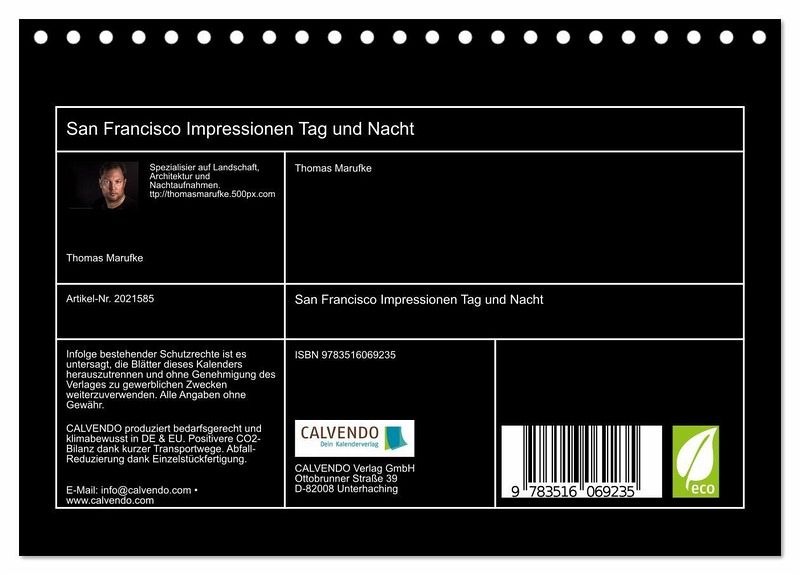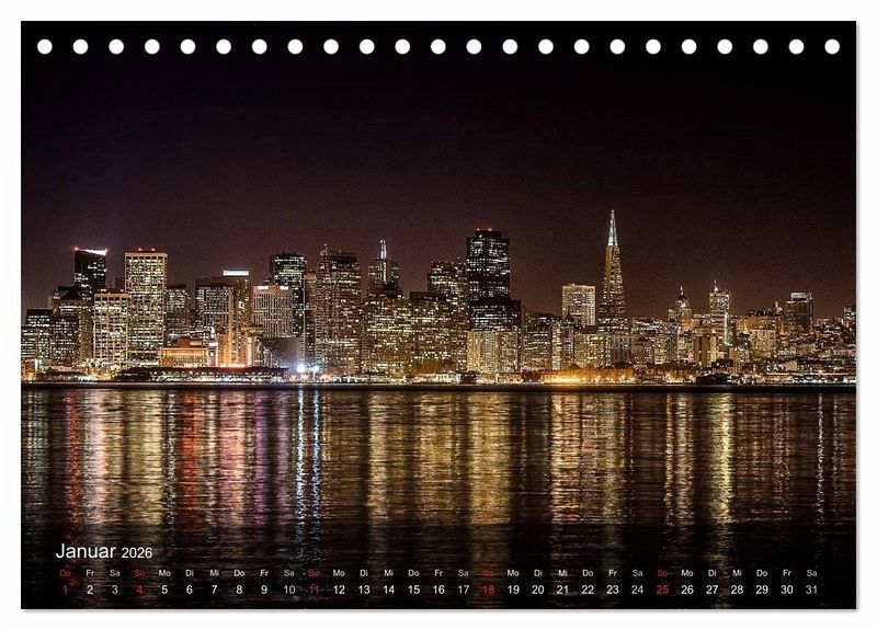 Der Kalender San Francisco Tag und Nacht zeigt faszinierende Aufnahmen und Einblicke von einer der aufregendsten Metropolen der Welt. Neben bekannten und berühmten Motiven begeistert dieser Kalender durch Nachtaufnahmen, die in dieser Form einzigartig sind. Dieser Kalender begleitet Sie mit spannenden Motiven aus San Francisco. Die Redaktion hat diesen Kalender aus 25.000 Veröffentlichungen für die CALVENDO Gold-Edition ausgewählt.