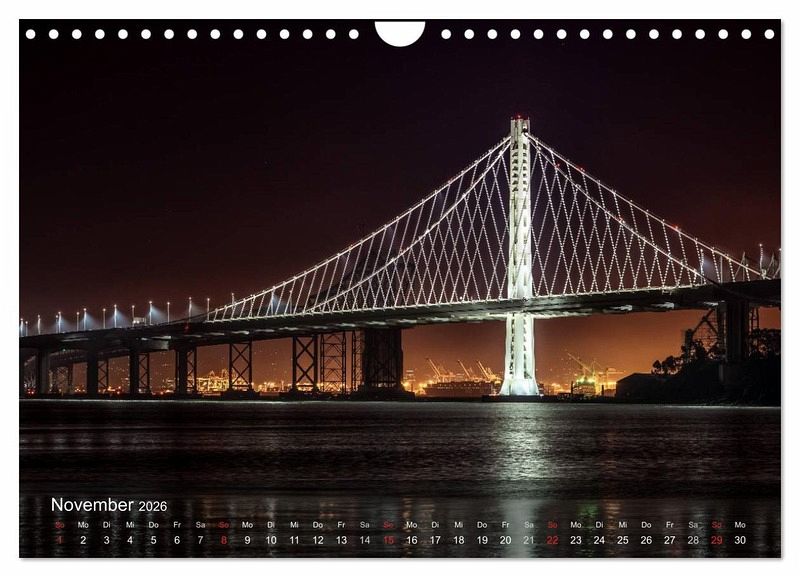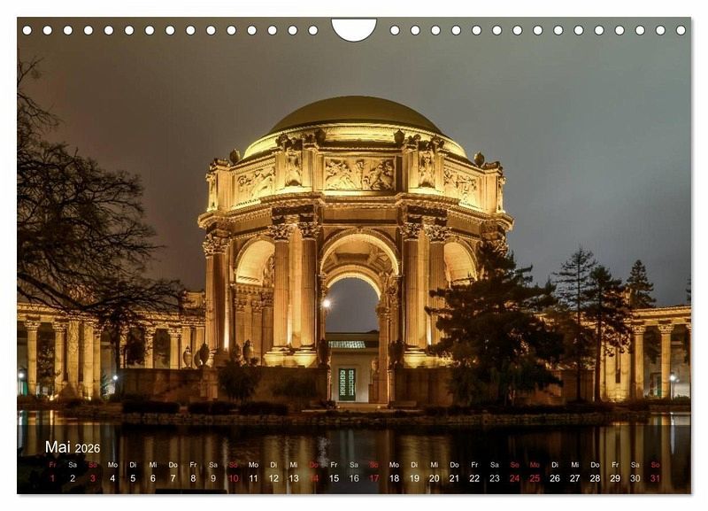 Der Kalender San Francisco Tag und Nacht zeigt faszinierende Aufnahmen und Einblicke von einer der aufregendsten Metropolen der Welt. Neben bekannten und berühmten Motiven begeistert dieser Kalender durch Nachtaufnahmen, die in dieser Form einzigartig sind. Dieser Kalender begleitet Sie mit spannenden Motiven aus San Francisco. Die Redaktion hat diesen Kalender aus 25.000 Veröffentlichungen für die CALVENDO Gold-Edition ausgewählt.