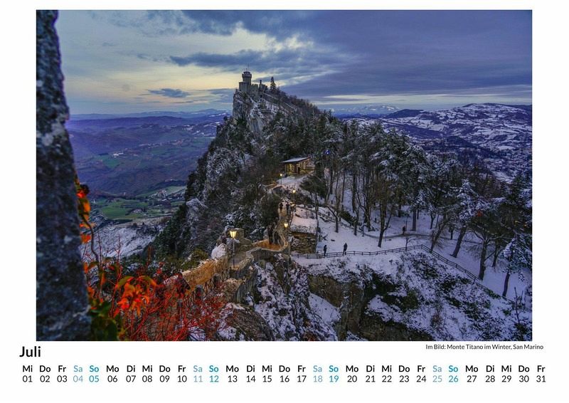 Entdecken Sie die faszinierende Schönheit von San Marino mit unserem exklusiven Wandkalender! Lassen Sie sich Monat für Monat von 12 atemberaubenden Motiven dieser malerischen Republik verzaubern - von historischen Festungen bis hin zu idyllischen Landschaften. Gedruckt auf hochwertigem, lichtbeständigem Bilderdruckpapier, kommen die Farben besonders brillant zur Geltung. Nachhaltigkeit liegt uns am Herzen: Unsere Kalender werden in Deutschland auf FSC-zertifiziertem Papier produziert. Perfekt als Geschenk oder für Ihr eigenes Zuhause - holen Sie sich ein Stück San Marino an die Wand und genießen Sie das ganze Jahr über mediterranes Flair! Hochwertig Erleben Sie ein Jahr voller Eleganz mit unserem Premium-Fotokalender. Jedes der 12 Motive ist auf hochwertigem, lichtbeständigem Bilderdruckpapier gedruckt, um die Lebendigkeit jedes Bildes zu bewahren. Die robuste Spiralbindung gewährleistet Langlebigkeit und einfache Handhabung. Nachhaltig Unser Engagement für die Umwelt spiegelt sich in jedem Exemplar wider. Durch die Produktion auf Abruf reduzieren wir signifikant unseren Abfall. Wir verwenden ausschließlich umweltfreundliches, FSC-zertifiziertes Papier. Stolz gefertigt in Deutschland, achten wir bei unserer Logistik auf Klimaschutz, um unseren ökologischen Fußabdruck zu minimieren. Das ideale Geschenk Dieser Kalender ist das perfekte Präsent für jeden Anlass - ob Weihnachten, Geburtstage oder einfach als liebevolle Aufmerksamkeit zwischendurch. Geeignet für Freunde, Familie, Kinder und Erwachsene gleichermaßen, bereichert er jedes Zuhause mit seiner Vielfalt und Schönheit, unabhängig vom Alter der Beschenkten.
