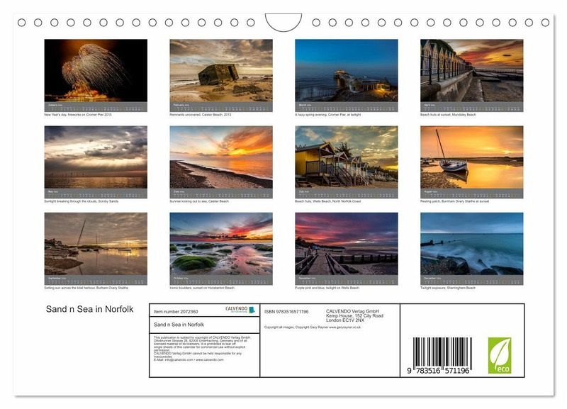 QUALITY - High-quality photo calendar with 12 beautiful images on light-resistant paper, robust spiral binding with hanger.SUSTAINABLE - Significant waste reduction due to print-on-demand production, environmentally friendly FSC-certified paper, produced in the UK, climate-conscious logistical processes.PERFECT GIFT - calendars for friends and family, forchildren, all ages and all occasions, from Christmas to birthdays and everything in between.LOTS OF CHOICE - Wall calendars in different sizes (DIN A4 and DIN A3), for any topic and personal taste, featuring photography, painting and illustrations.Landscapes of the Norfolk Coast Line, author: Gary Rayner