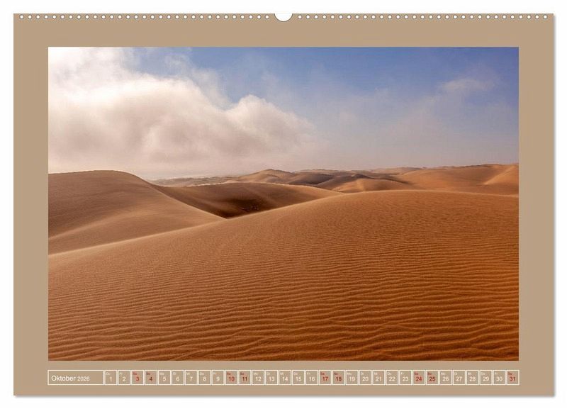 Dieser Fotokalender fängt die stille Erhabenheit der ältesten und einer der faszinierendsten Wüsten der Welt ein. Die Farben des Sonnenlichts auf den Dünen, die unendliche Weite und das Spiel von Licht und Schatten werden Sie Monat für Monat in ihren Bann ziehen. Genießen Sie die pure Schönheit der Natur und lassen Sie sich von der zeitlosen Eleganz der Namib-Wüste inspirieren.