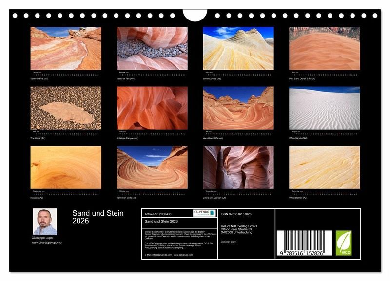 QUALITÄT - Hochwertiger Fotokalender mit 12 wunderschönen Motiven auf lichtbeständigem Bilderdruckpapier, robuste Spiralbindung mit Aufhängebügel.NACHHALTIG - deutliche Abfallreduzierung durch bedarfsgerechte Einzelstückfertigung, umweltfreundliches FSC-zertifiziertes Papier, Produktion in Deutschland, klimabewusste Logistik.PERFEKTES GESCHENK - Kalender für Freunde und Familie, für Kinder und Erwachsene, jung und alt, zu Weihnachten, Geburtstag oder zwischendurch.VIELFALT - Bildkalender in verschiedenen Formaten, z.B. DIN A5, DIN A4, DIN A3 sowie DIN A2. Ob Naturmotiv, Gemälde oder Fotos, ideal für ein persönliches Wohlfühlambiente.Naturwunder im Südwesten der USA von Autor(in): Giuseppe Lupo